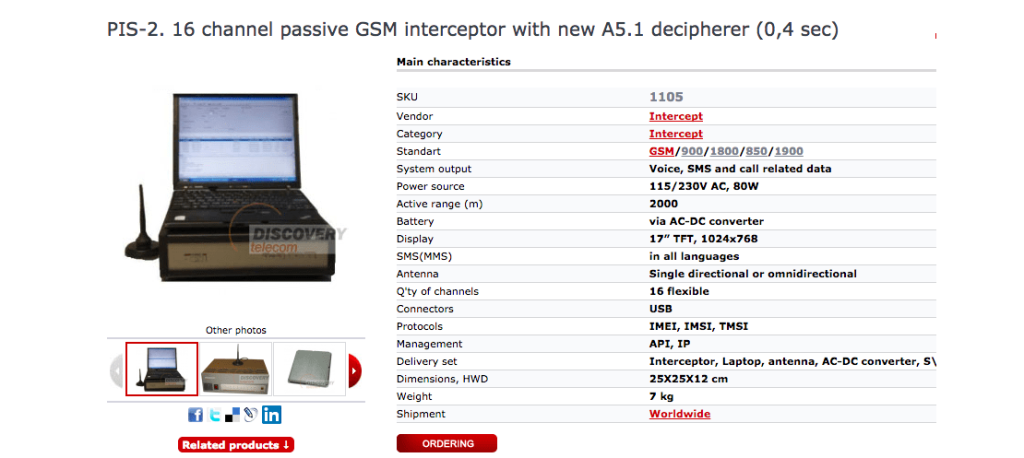 Ranging from $1800.00 to $25,000 you can buy your very own Intercept brand cell phone signal interceptor and can read SMS, Data input to websites, phone messages and history.